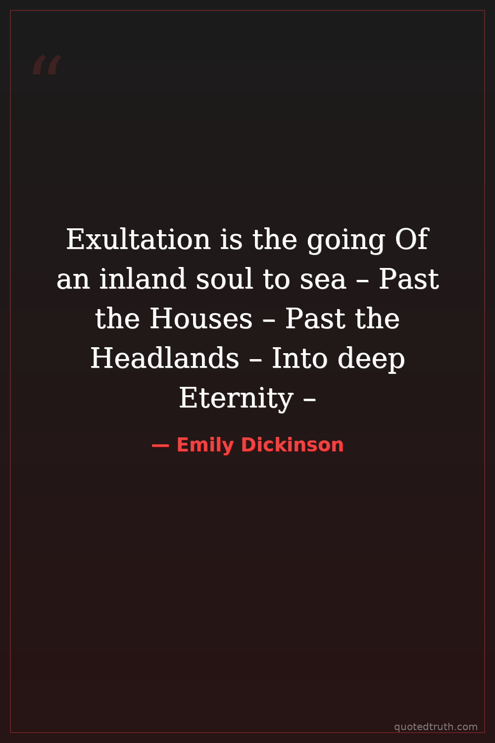 Exultation is the going Of an inland soul to sea – Past the Houses – Past the Headlands – Into deep Eternity –