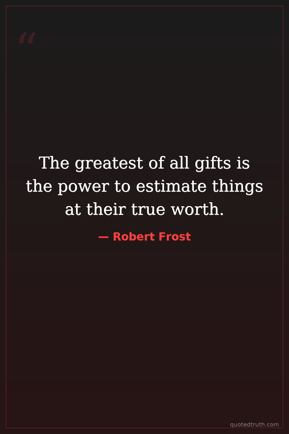 The greatest of all gifts is the power to estimate things at their true worth.