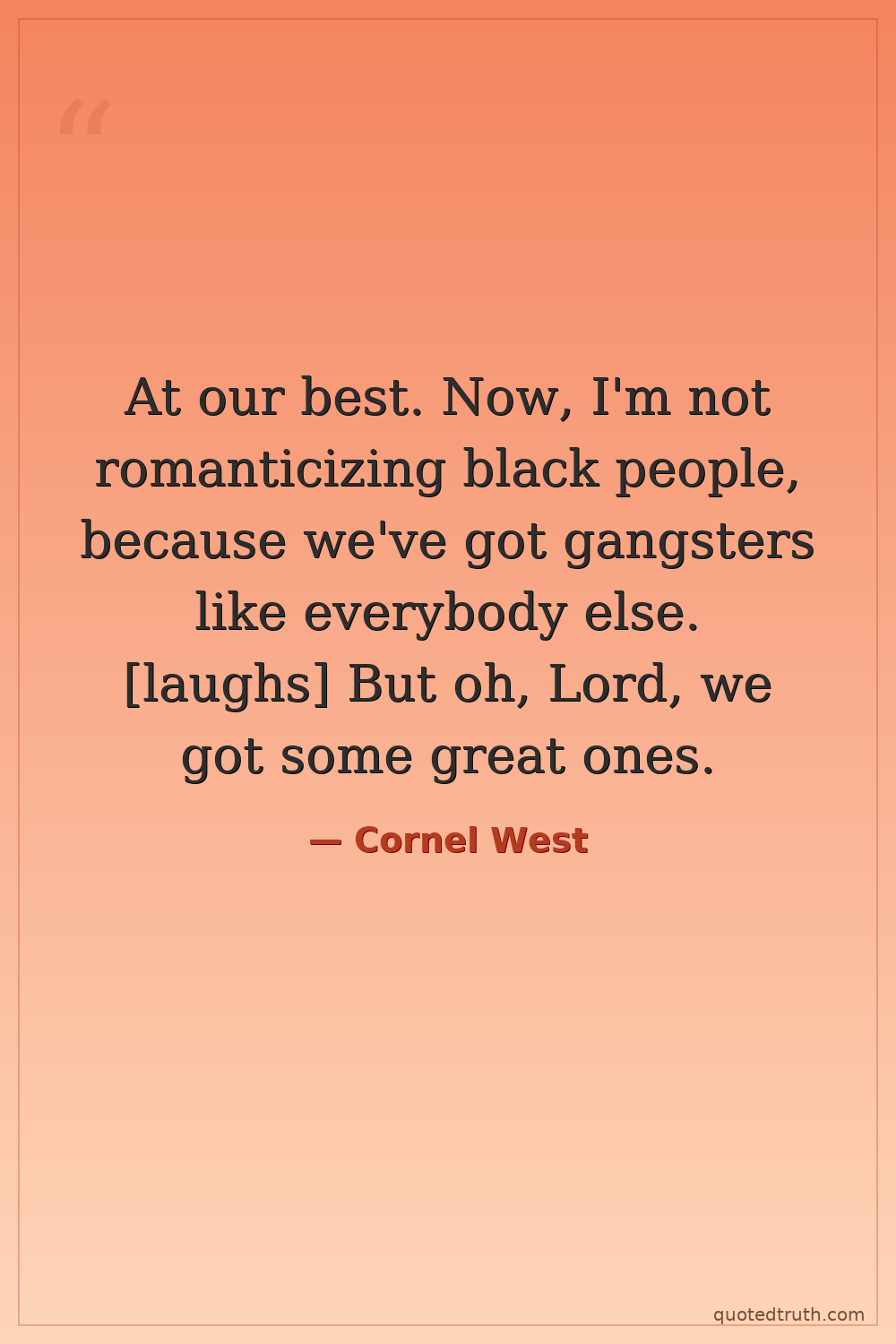 At our best. Now, I'm not romanticizing black people, because we've got gangsters like everybody else. [laughs] But oh, Lord, we got some great ones.