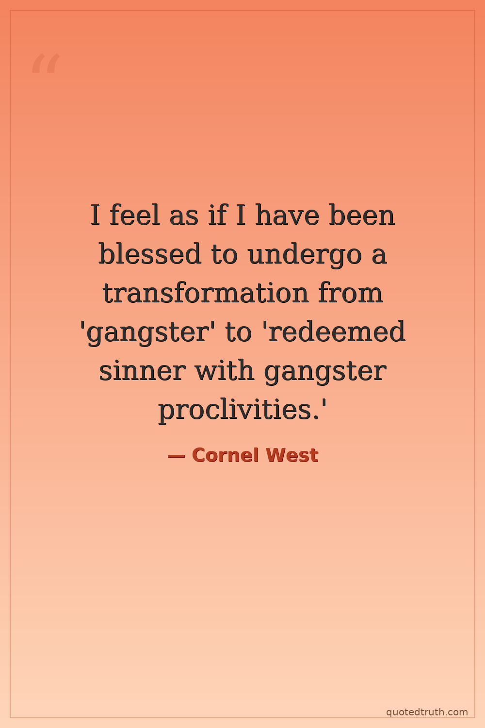 I feel as if I have been blessed to undergo a transformation from 'gangster' to 'redeemed sinner with gangster proclivities.'