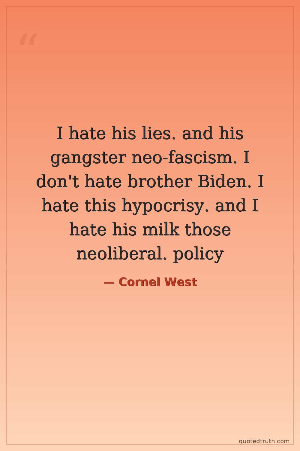 I hate his lies. and his gangster neo-fascism. I don't hate brother Biden. I hate this hypocrisy. and I hate his milk those neoliberal. policy