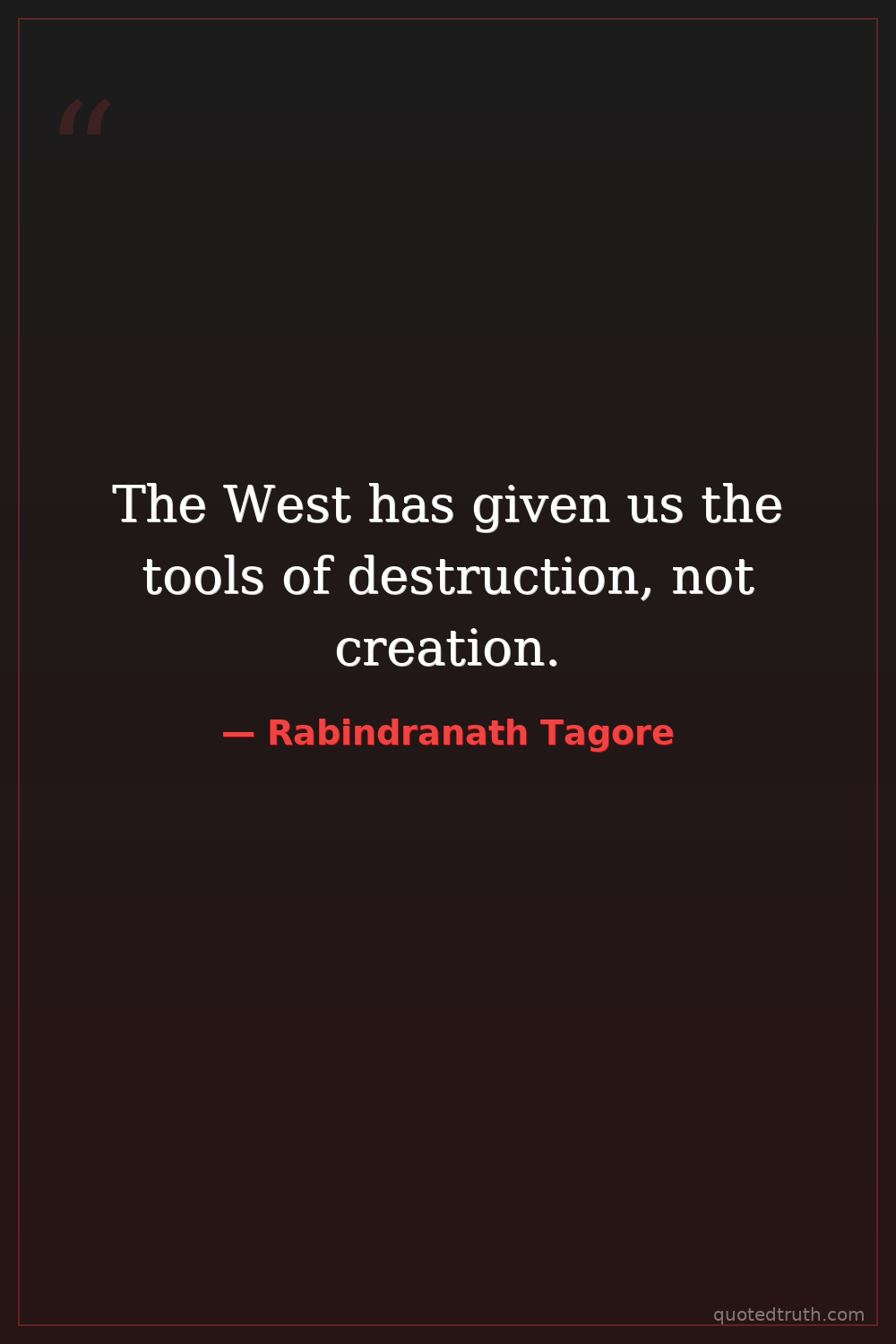 The West has given us the tools of destruction, not creation.