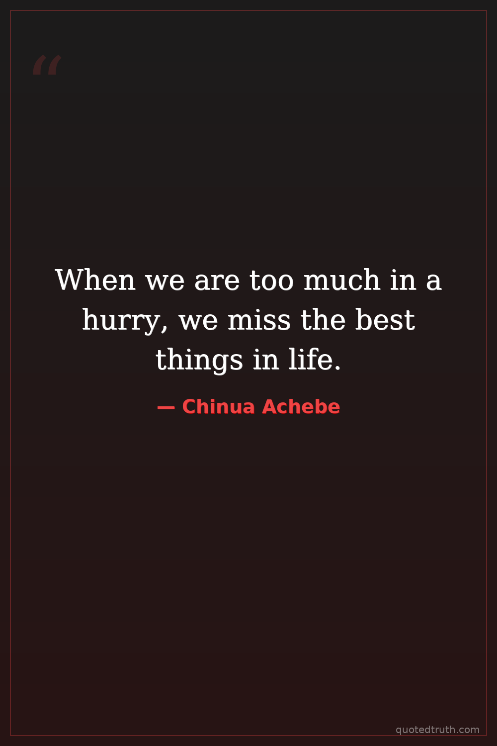 When we are too much in a hurry, we miss the best things in life.