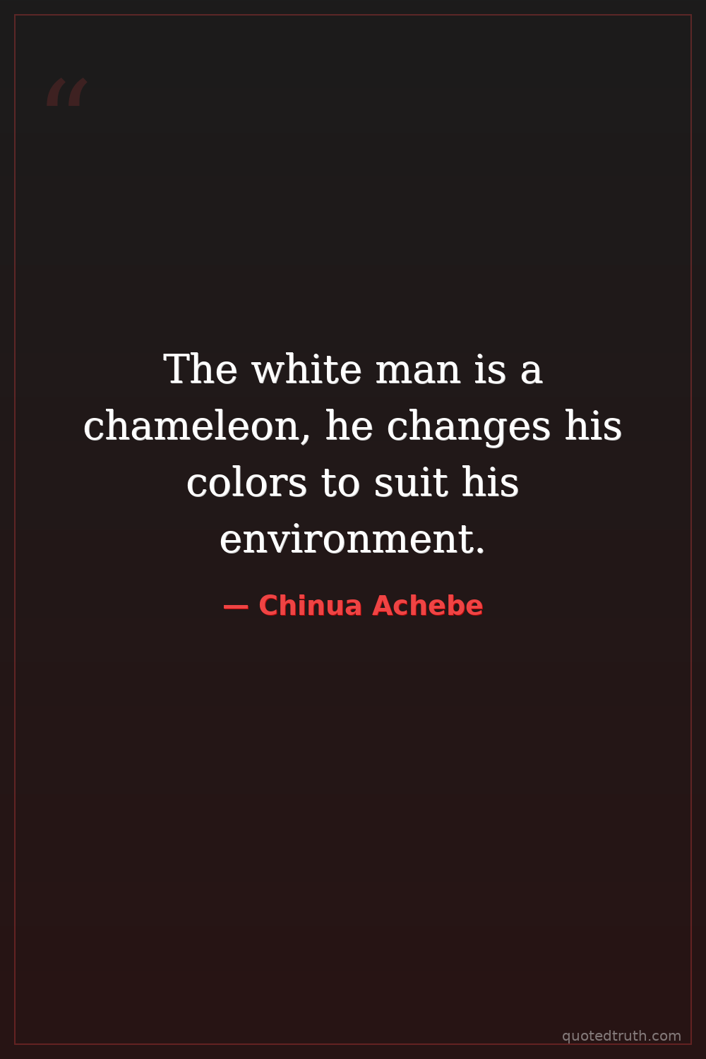 The white man is a chameleon, he changes his colors to suit his environment.