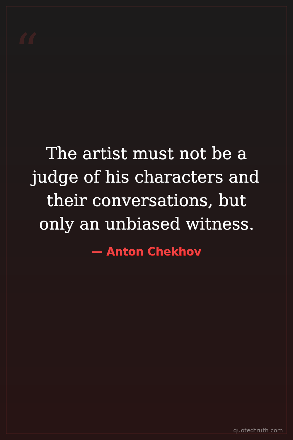 The artist must not be a judge of his characters and their conversations, but only an unbiased witness.