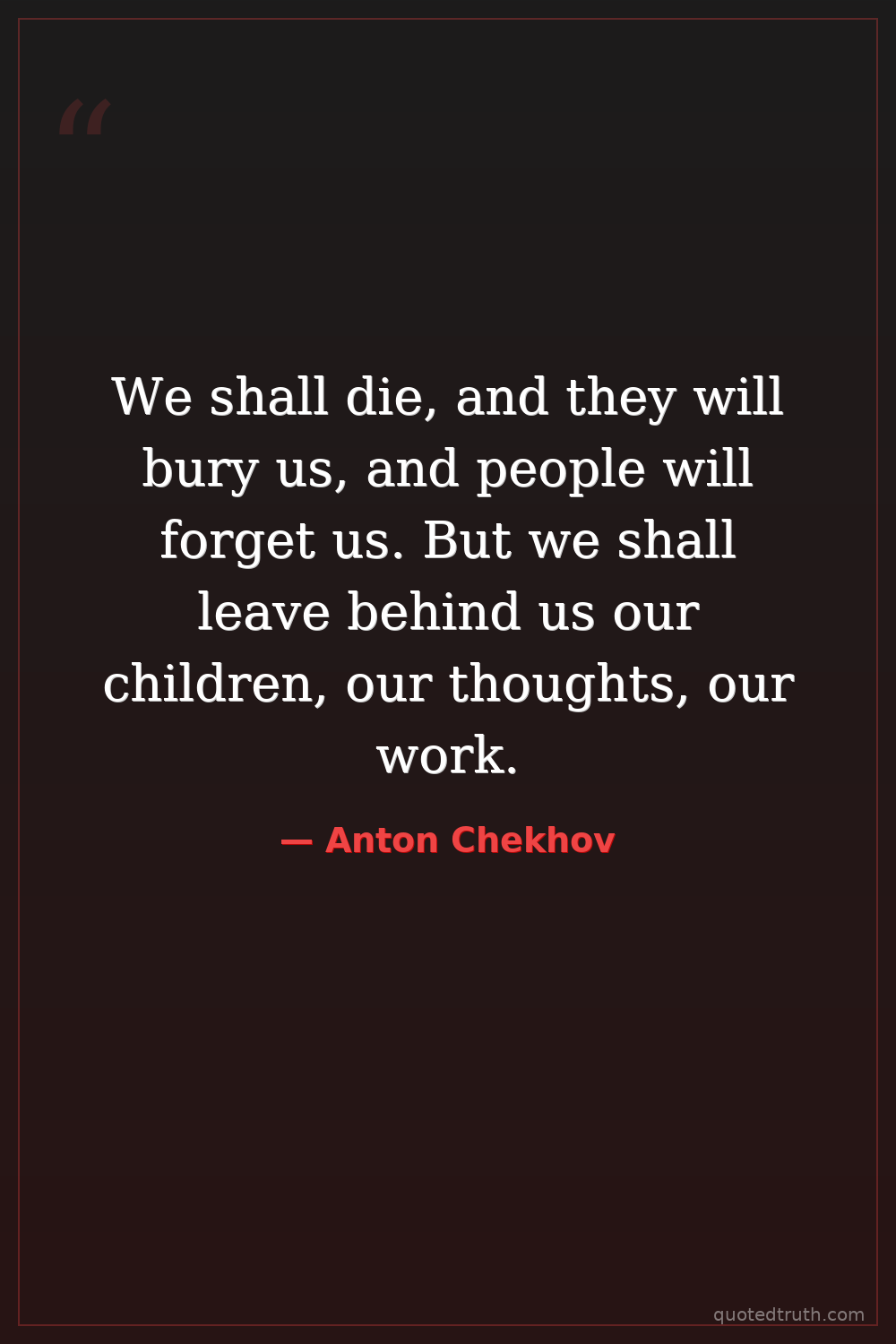 We shall die, and they will bury us, and people will forget us. But we shall leave behind us our children, our thoughts, our work.