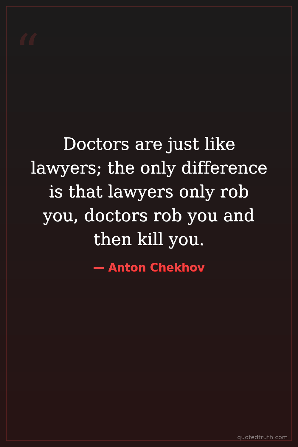Doctors are just like lawyers; the only difference is that lawyers only rob you, doctors rob you and then kill you.