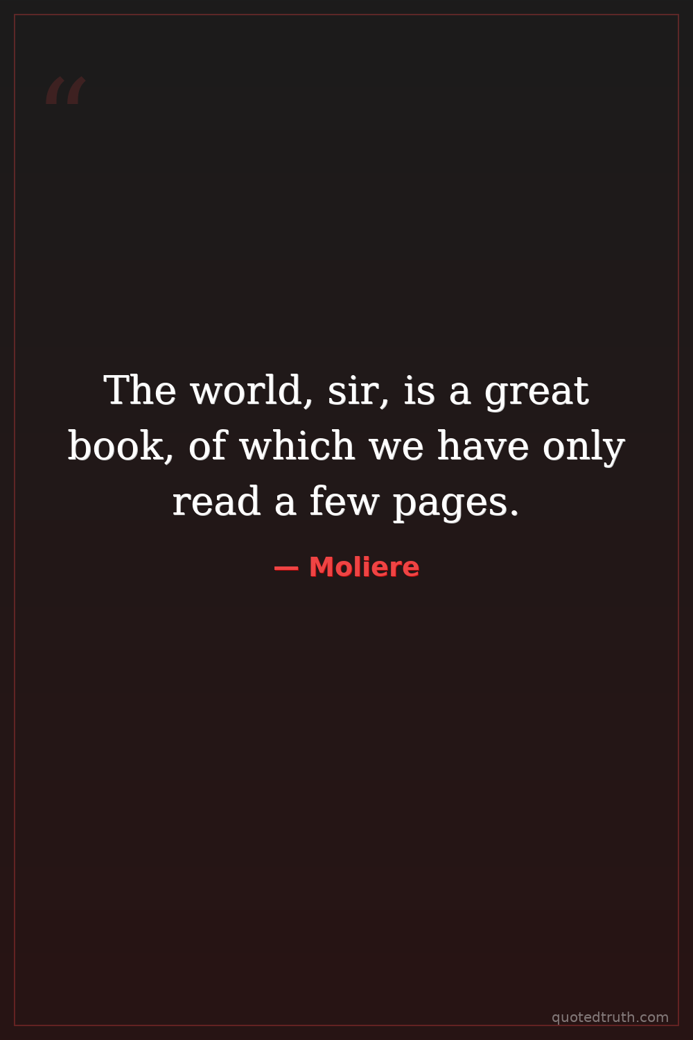 The world, sir, is a great book, of which we have only read a few pages.