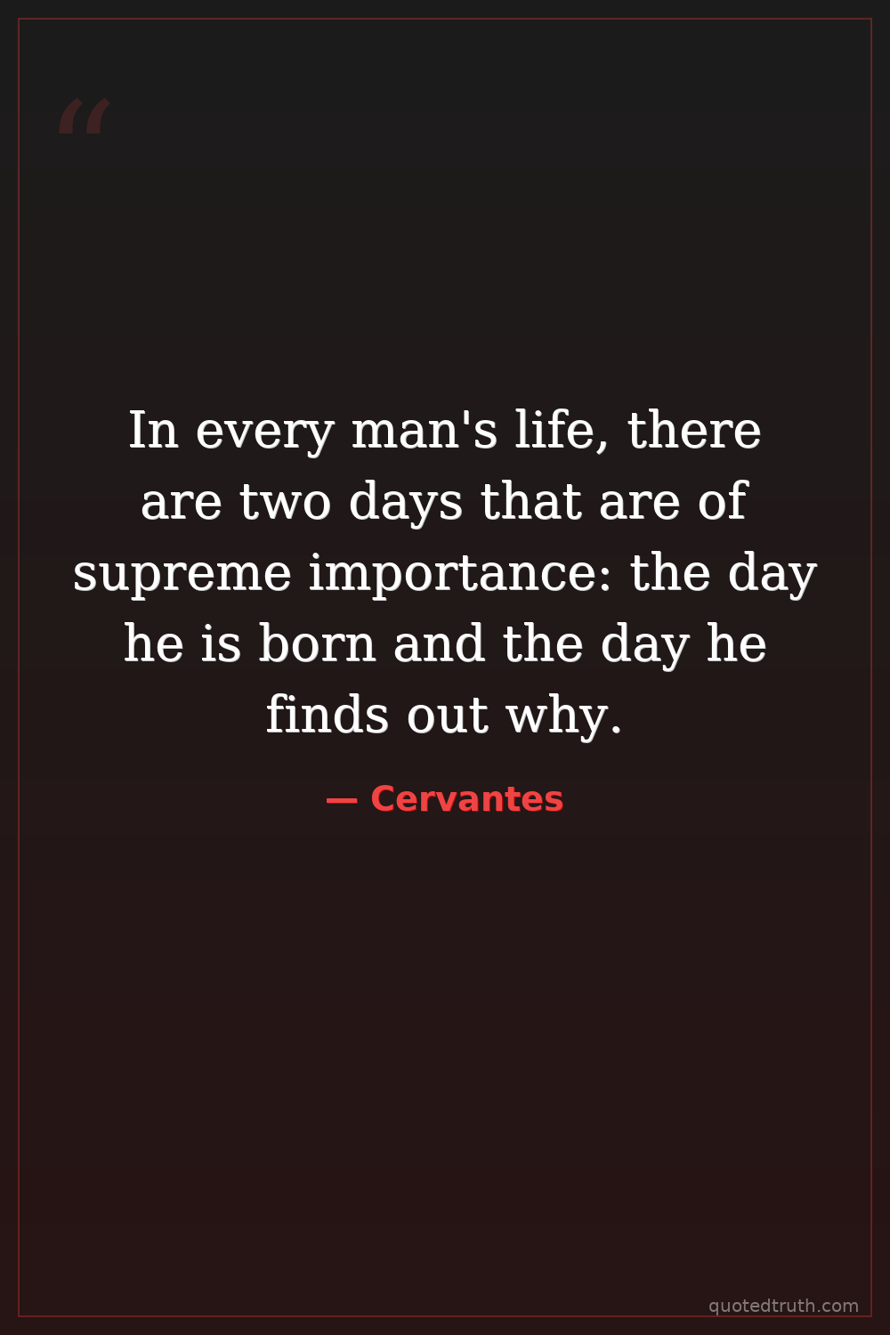 In every man's life, there are two days that are of supreme importance: the day he is born and the day he finds out why.
