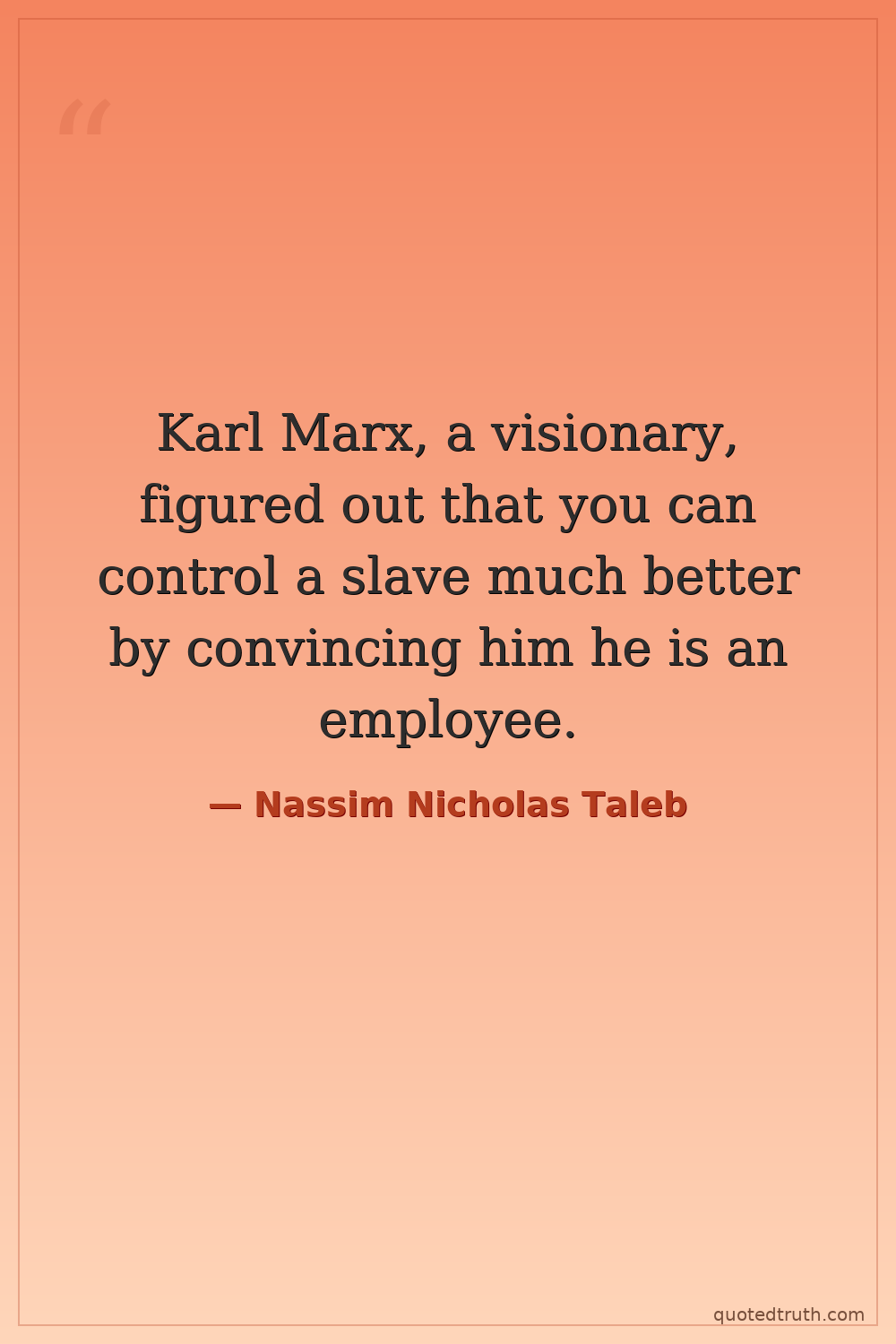 Karl Marx, a visionary, figured out that you can control a slave much better by convincing him he is an employee.