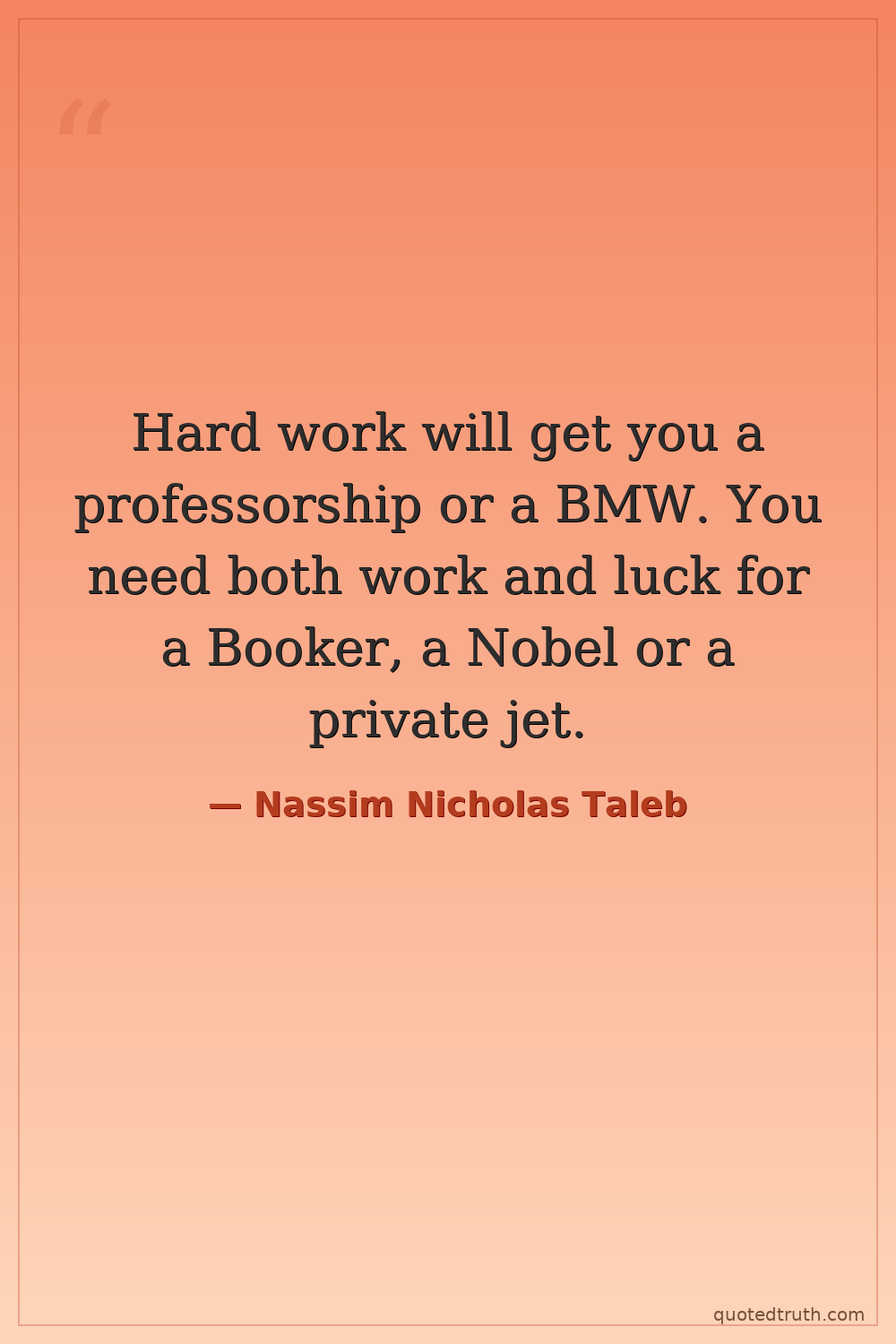 Hard work will get you a professorship or a BMW. You need both work and luck for a Booker, a Nobel or a private jet.