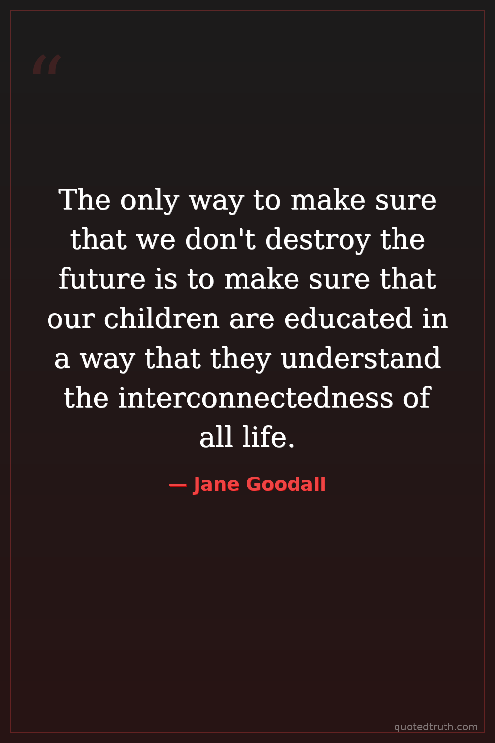 The only way to make sure that we don't destroy the future is to make sure that our children are educated in a way that they understand the interconnectedness of all life.