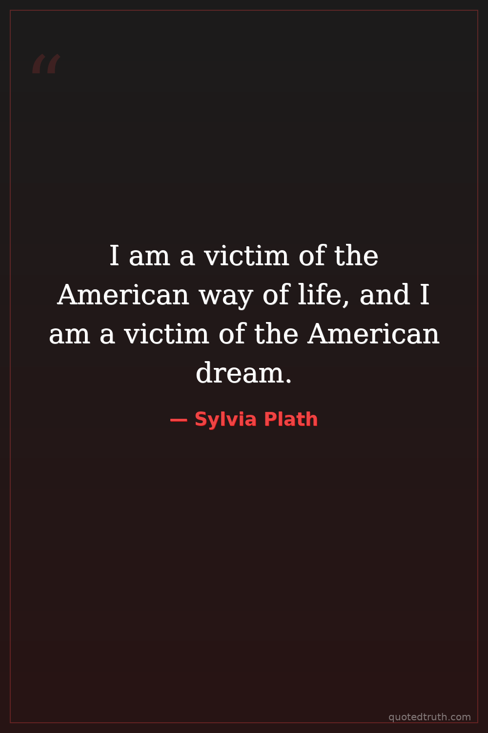 I am a victim of the American way of life, and I am a victim of the American dream.