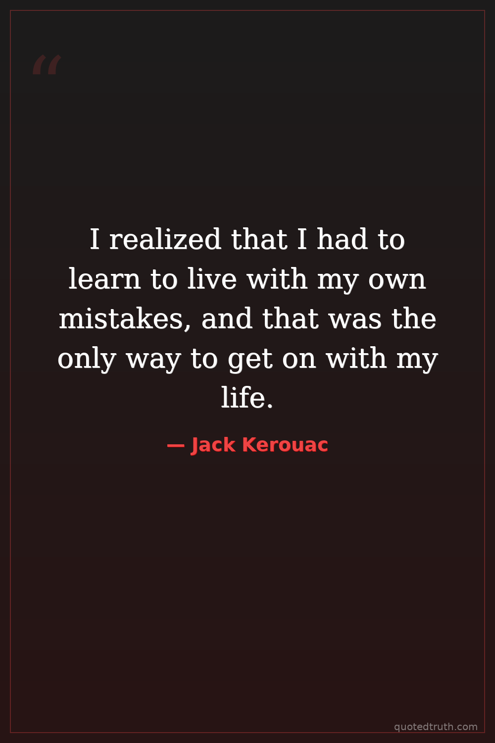 I realized that I had to learn to live with my own mistakes, and that was the only way to get on with my life.