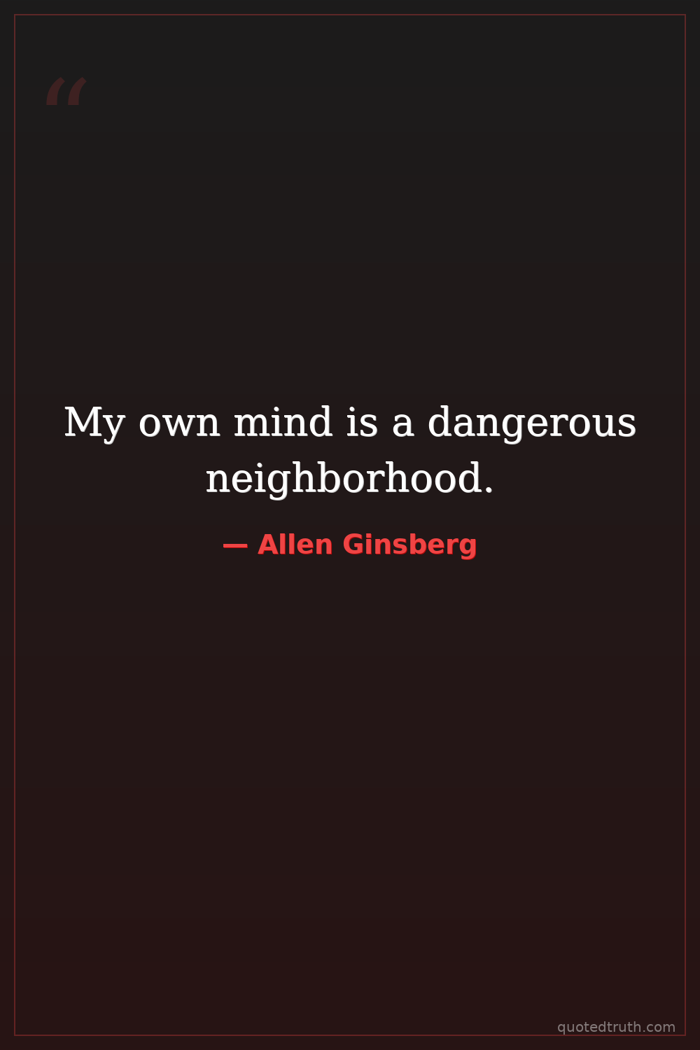 My own mind is a dangerous neighborhood.