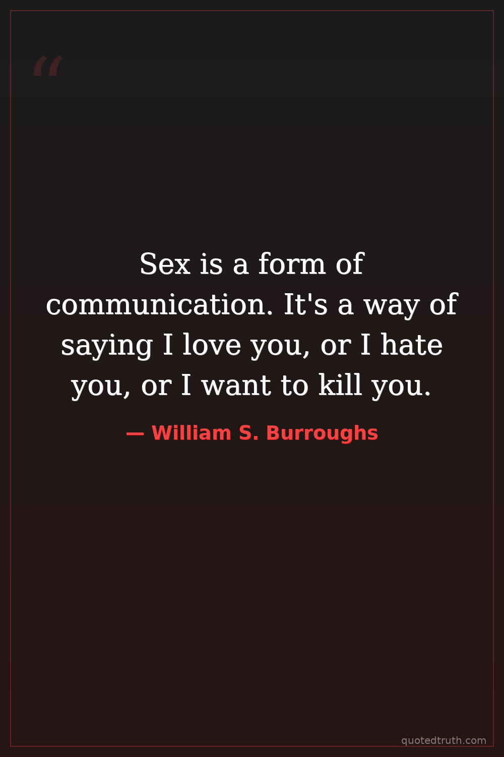 Sex is a form of communication. It's a way of saying I love you, or I hate you, or I want to kill you.