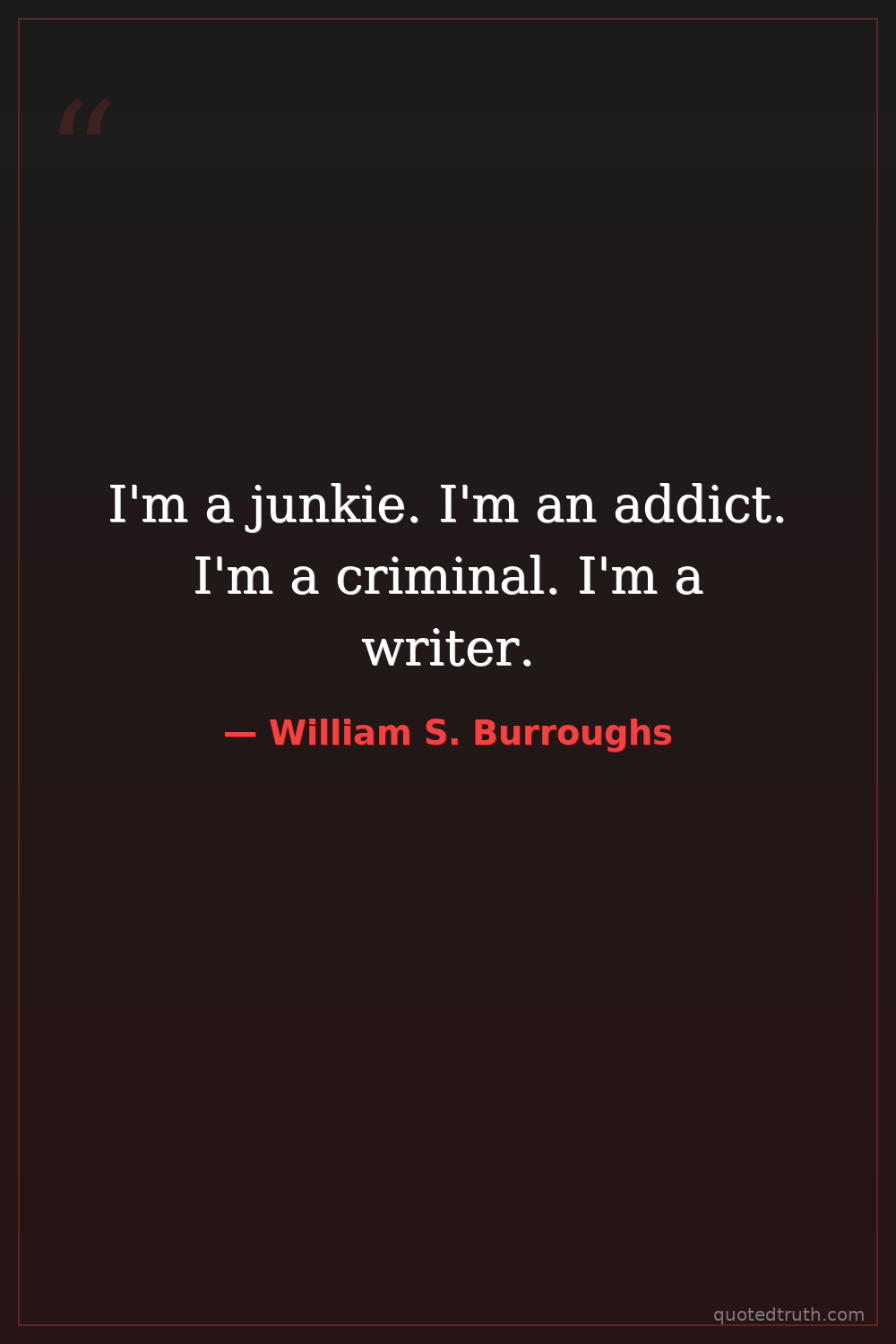 I'm a junkie. I'm an addict. I'm a criminal. I'm a writer.