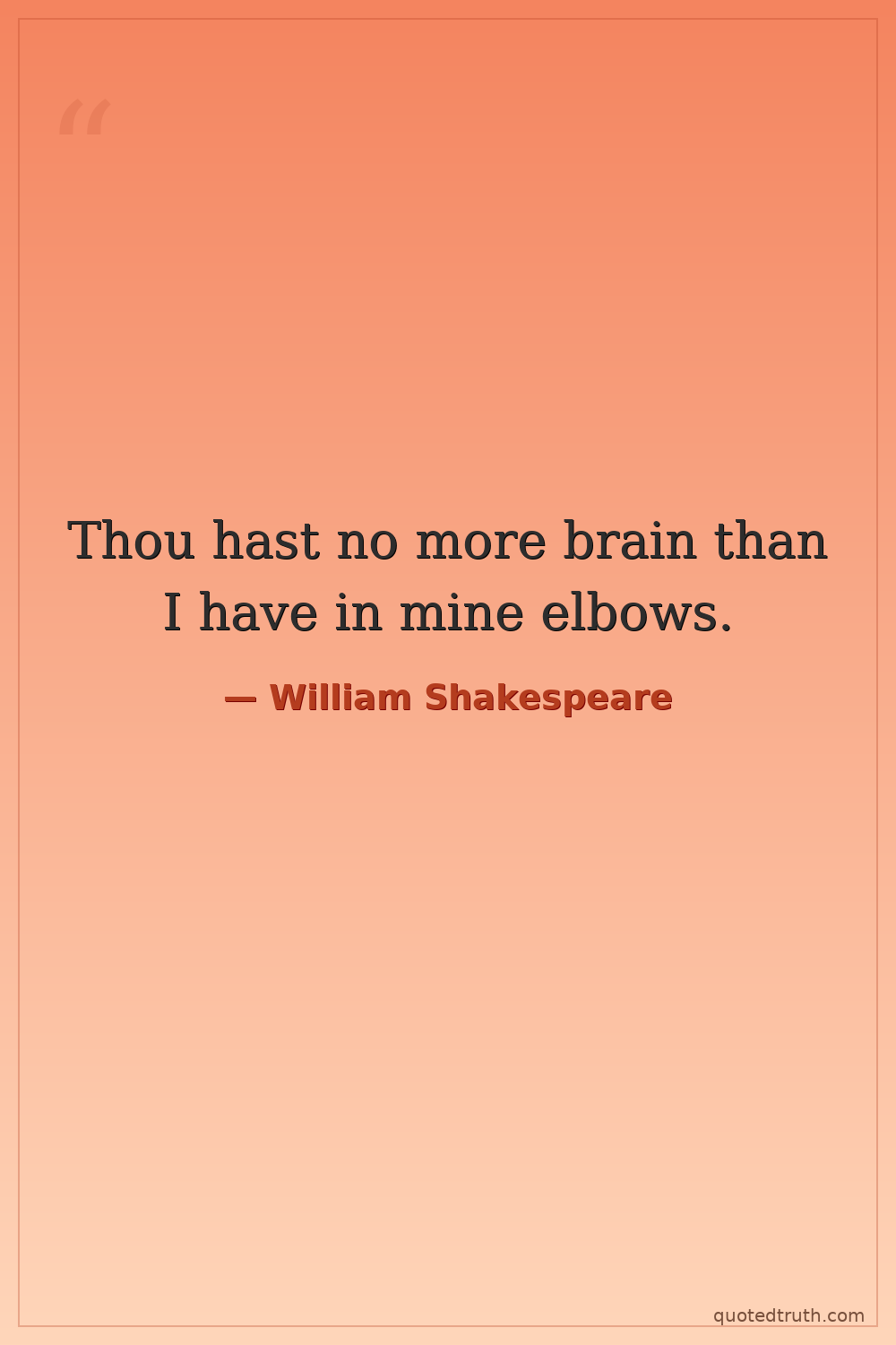 Thou hast no more brain than I have in mine elbows.