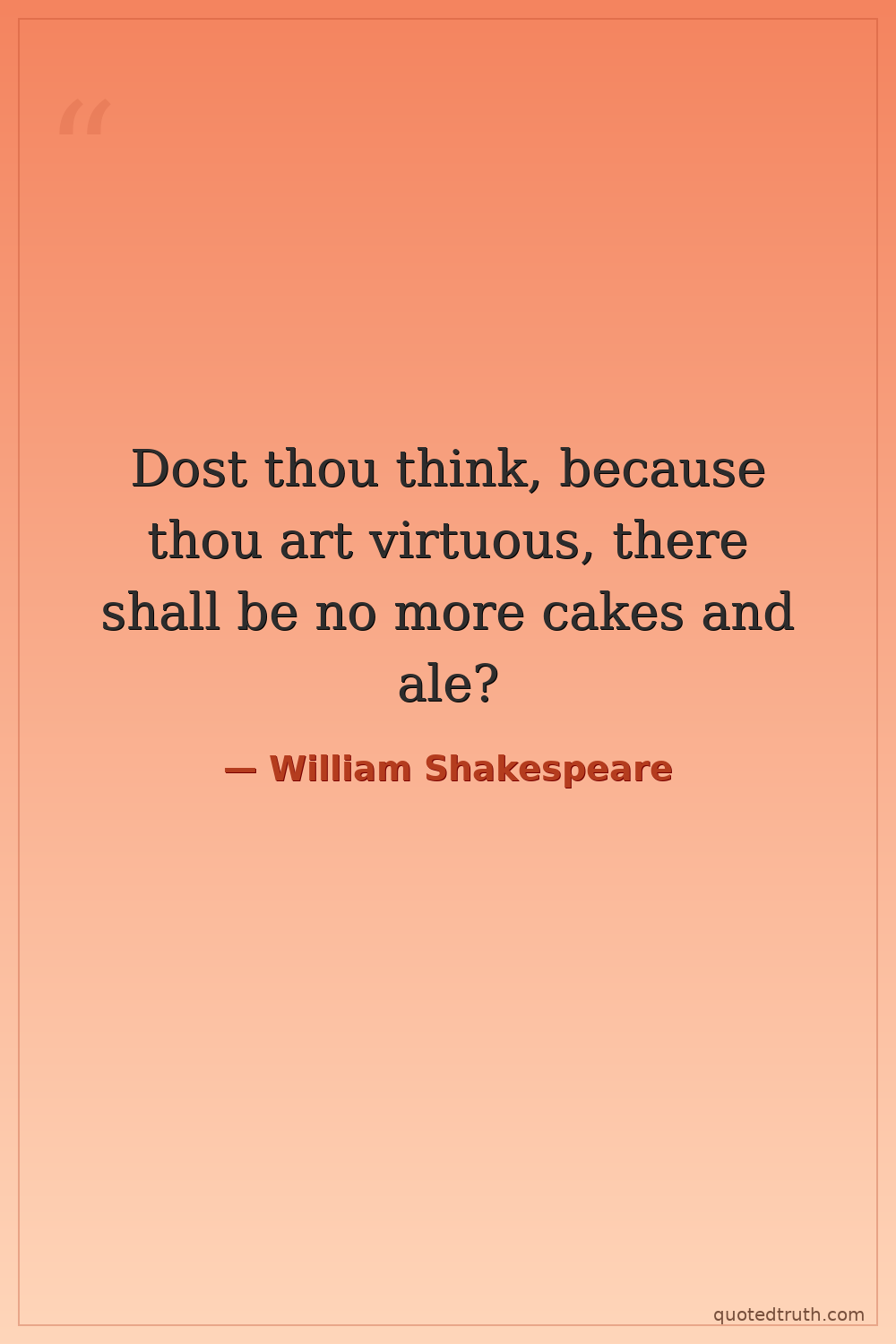 Dost thou think, because thou art virtuous, there shall be no more cakes and ale?