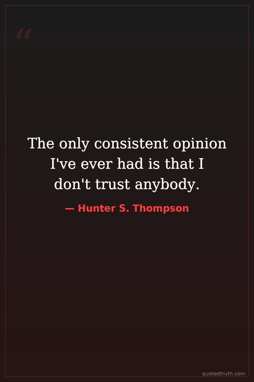 The only consistent opinion I've ever had is that I don't trust anybody.