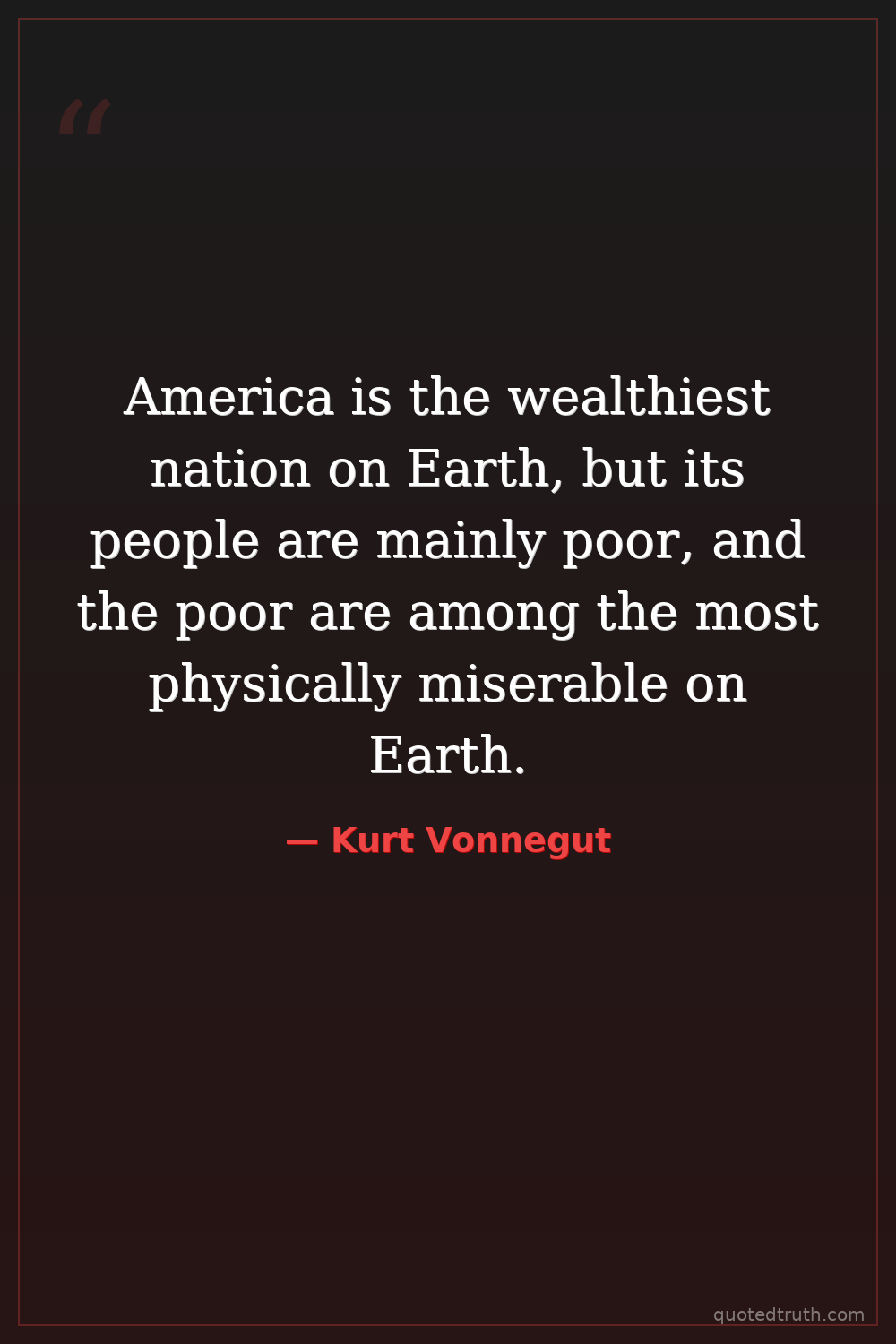 America is the wealthiest nation on Earth, but its people are mainly poor, and the poor are among the most physically miserable on Earth.
