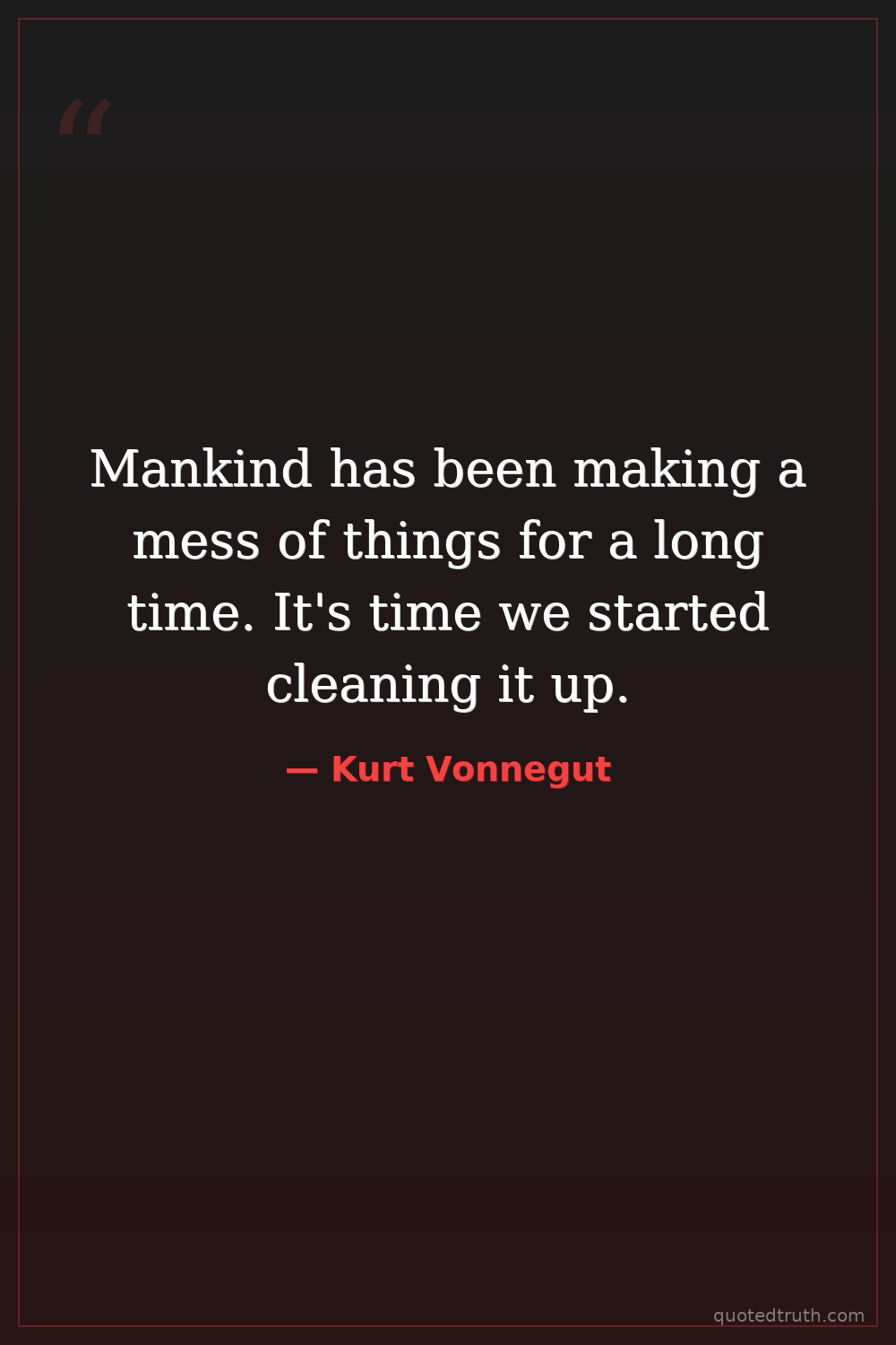 Mankind has been making a mess of things for a long time. It's time we started cleaning it up.