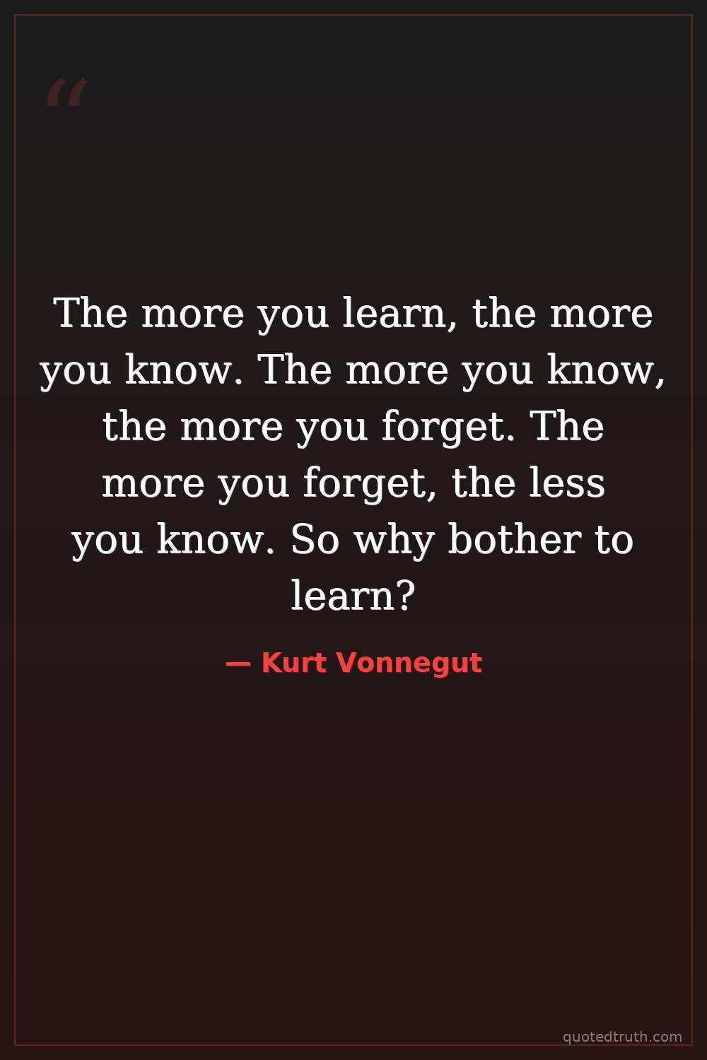 The more you learn, the more you know. The more you know, the more you forget. The more you forget, the less you know. So why bother to learn?