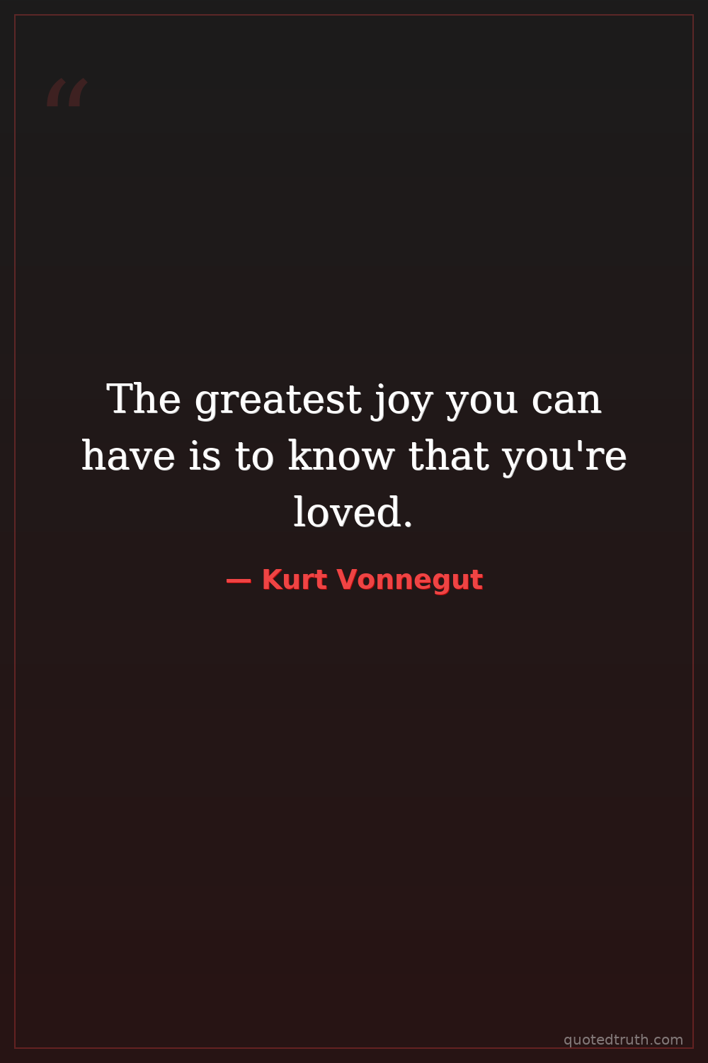 The greatest joy you can have is to know that you're loved.
