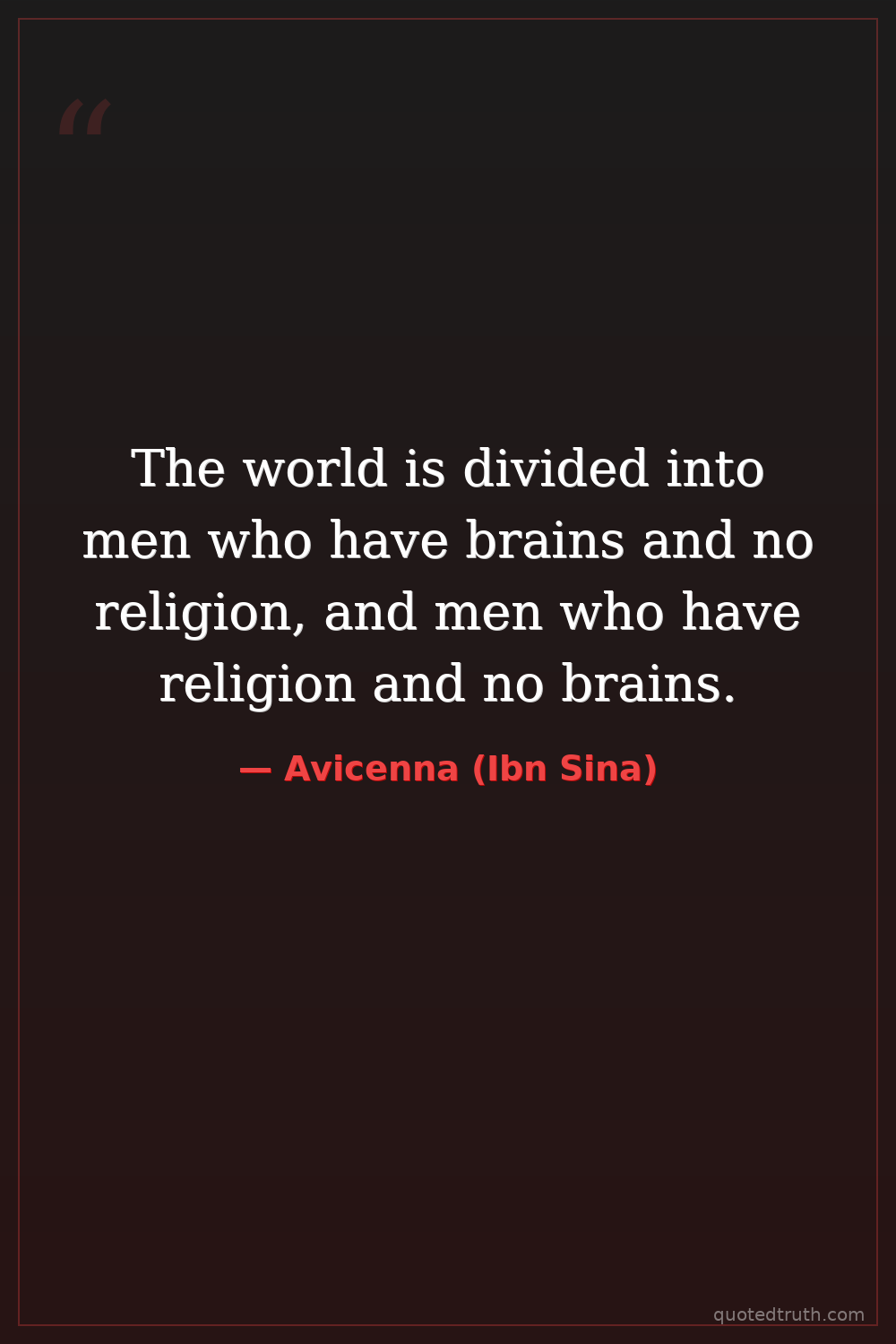 The world is divided into men who have brains and no religion, and men who have religion and no brains.