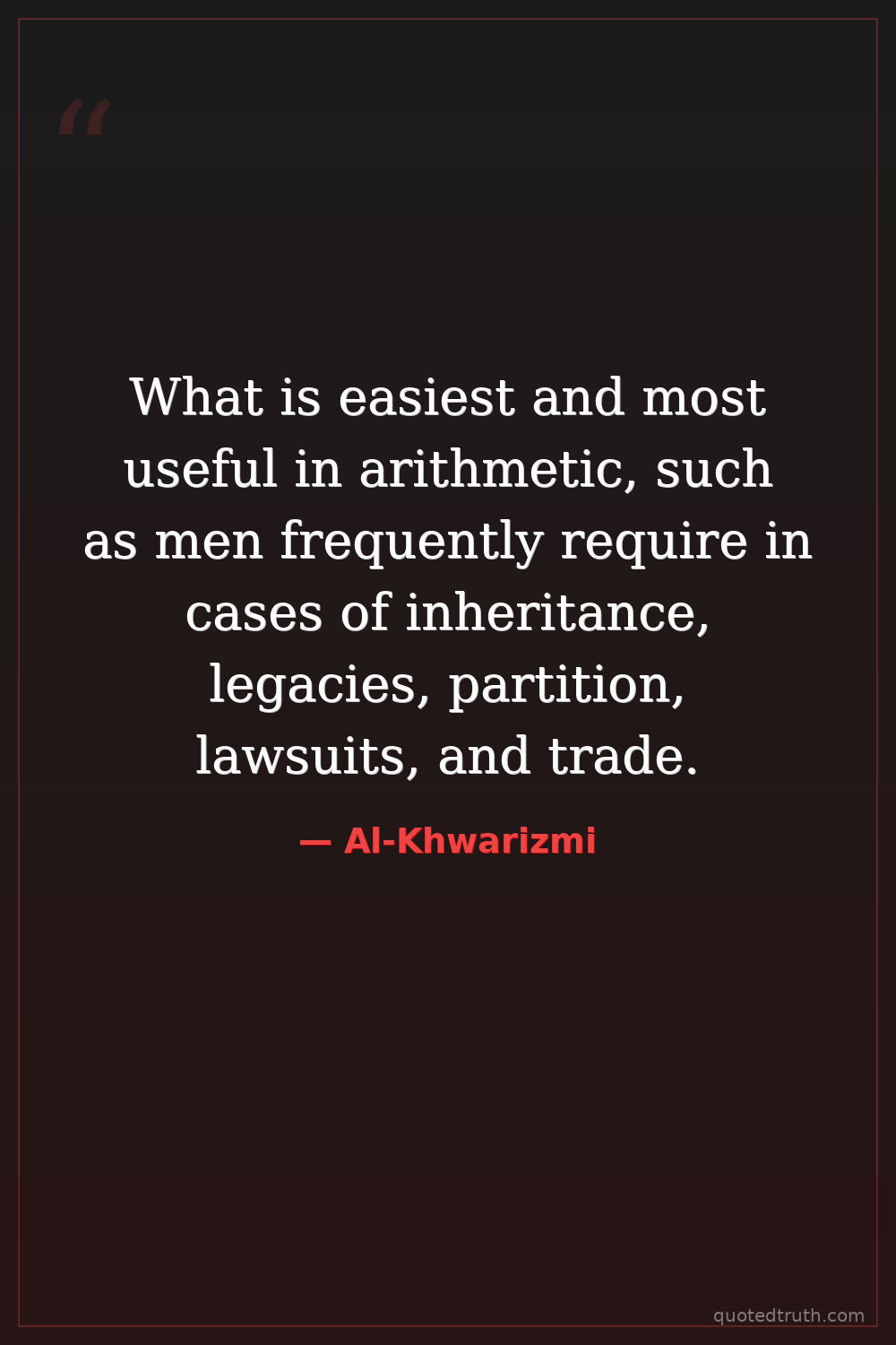What is easiest and most useful in arithmetic, such as men frequently require in cases of inheritance, legacies, partition, lawsuits, and trade.