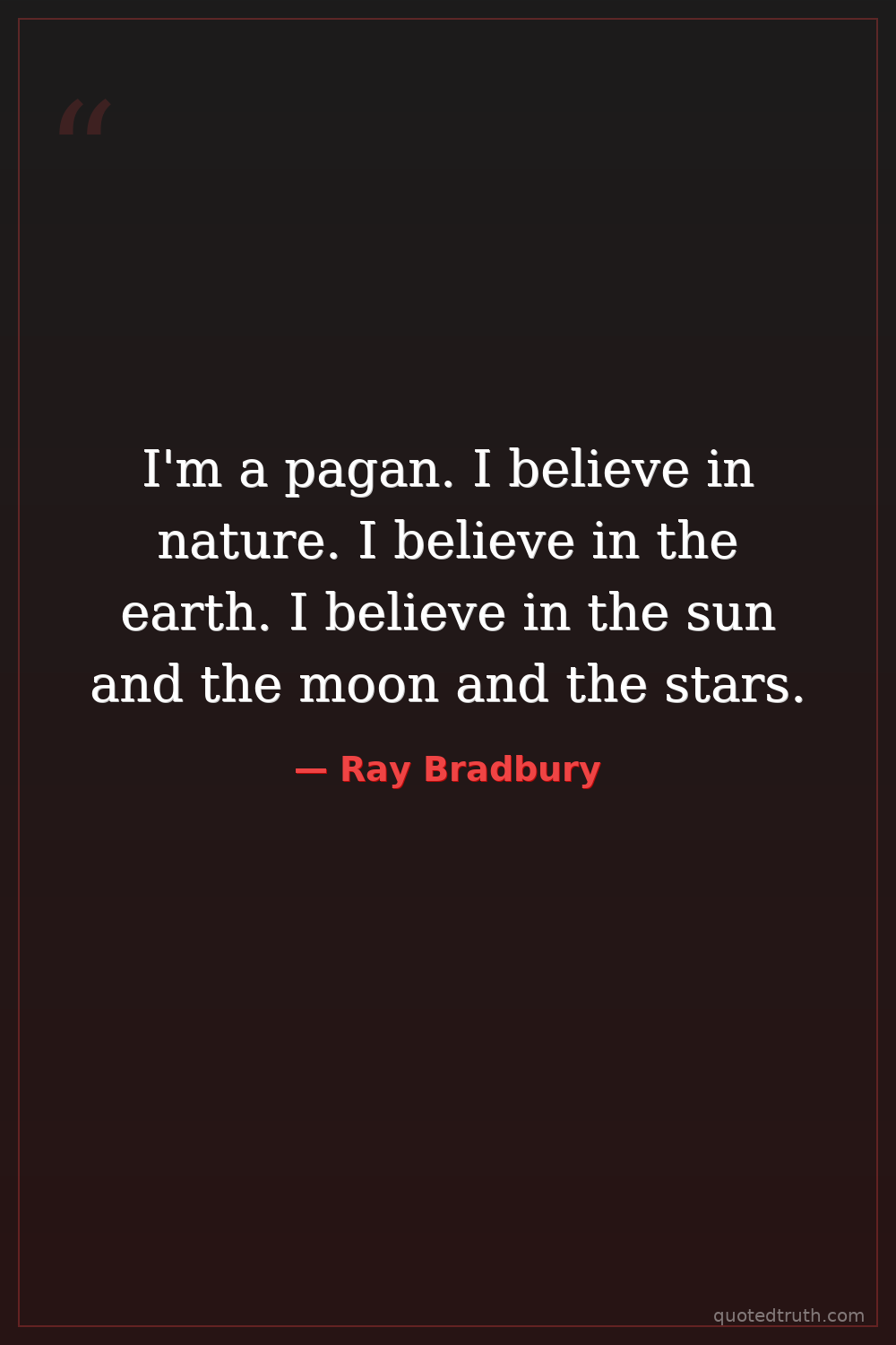 I'm a pagan. I believe in nature. I believe in the earth. I believe in the sun and the moon and the stars.