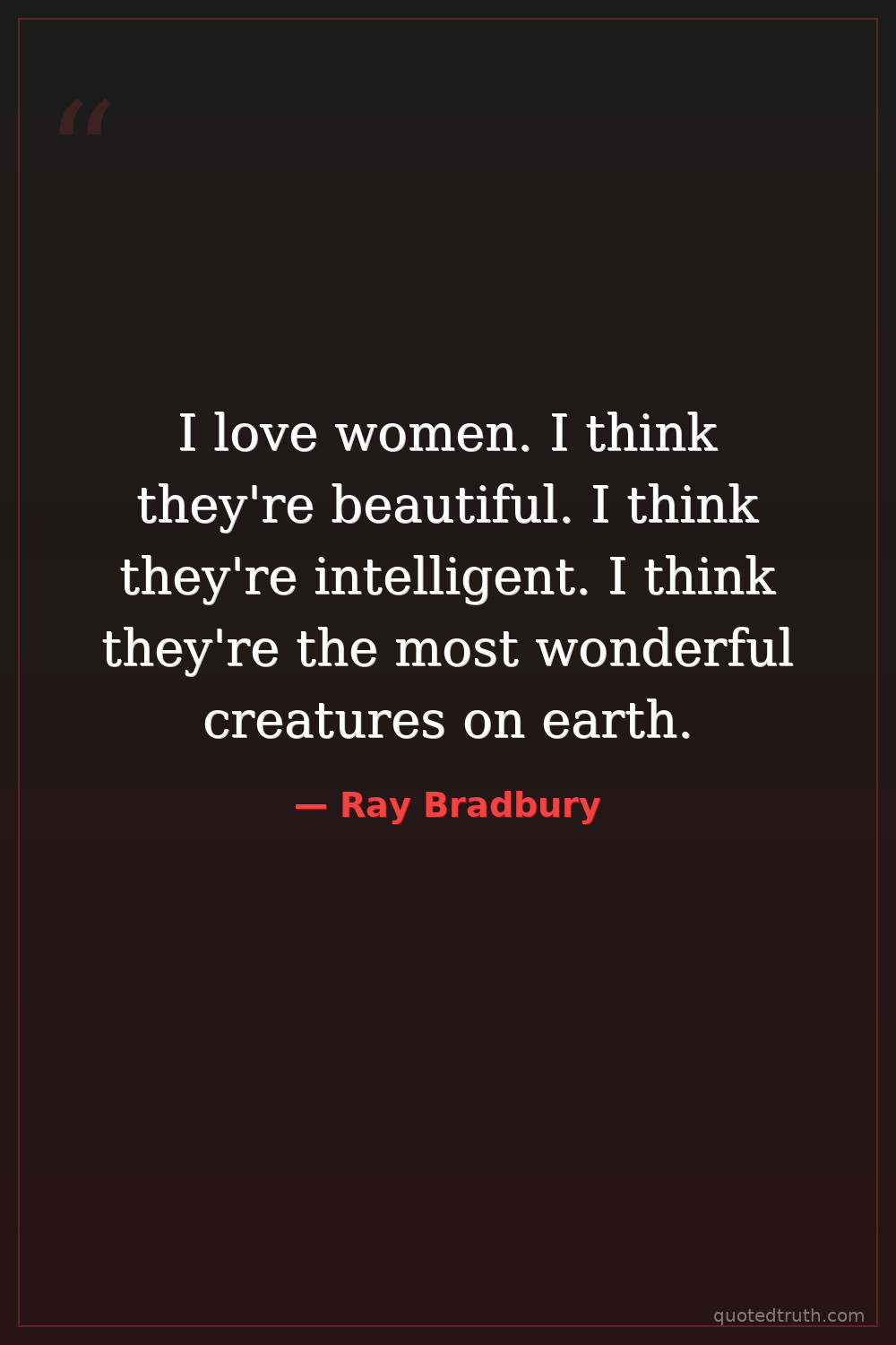 I love women. I think they're beautiful. I think they're intelligent. I think they're the most wonderful creatures on earth.