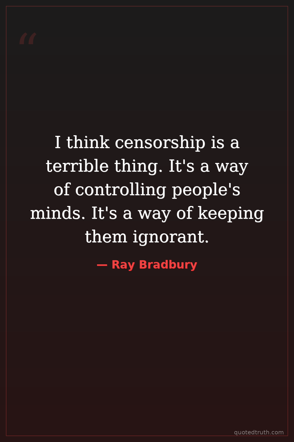 I think censorship is a terrible thing. It's a way of controlling people's minds. It's a way of keeping them ignorant.