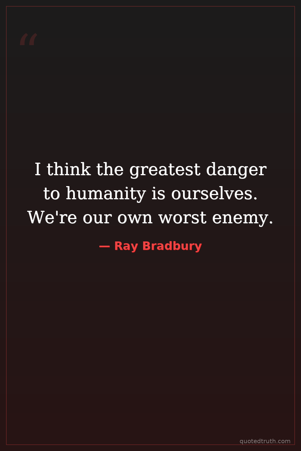I think the greatest danger to humanity is ourselves. We're our own worst enemy.
