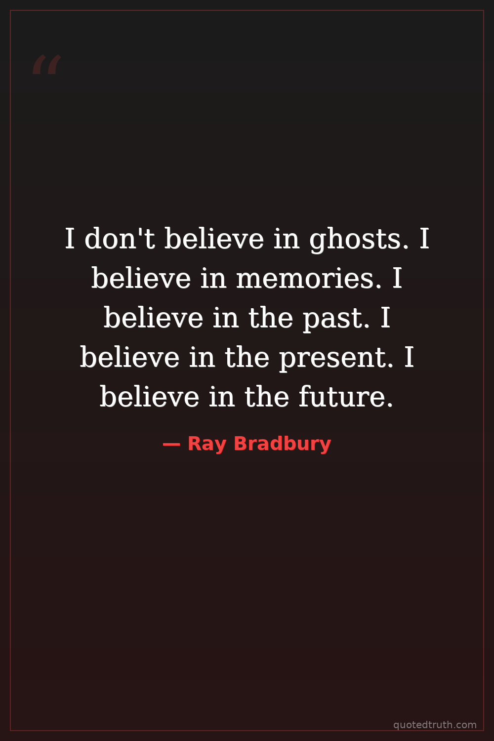 I don't believe in ghosts. I believe in memories. I believe in the past. I believe in the present. I believe in the future.