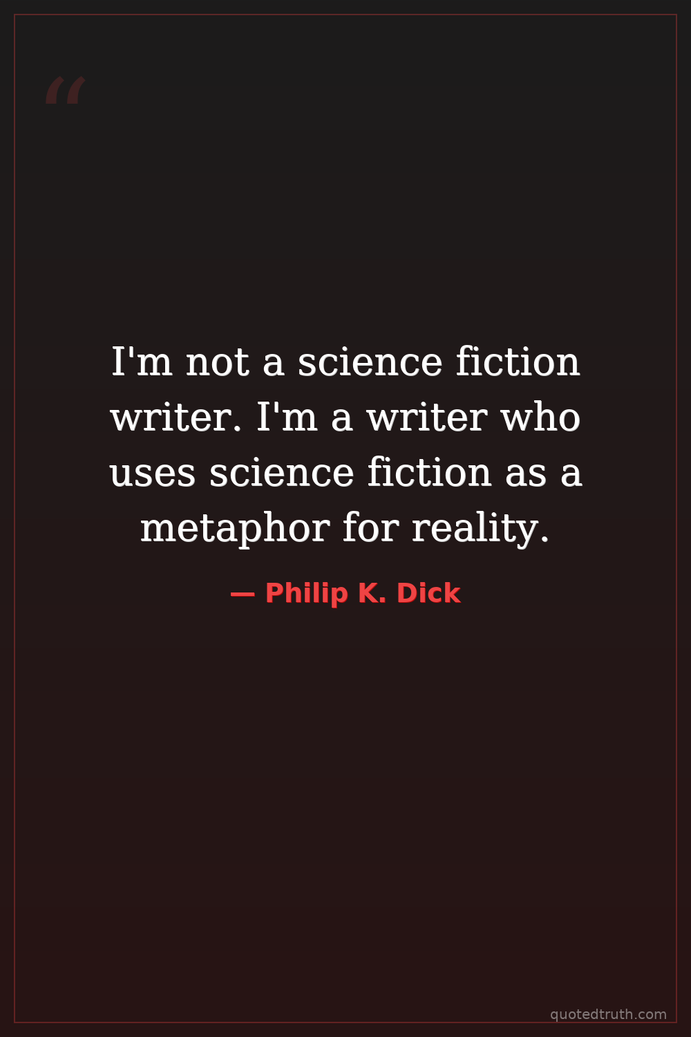 I'm not a science fiction writer. I'm a writer who uses science fiction as a metaphor for reality.