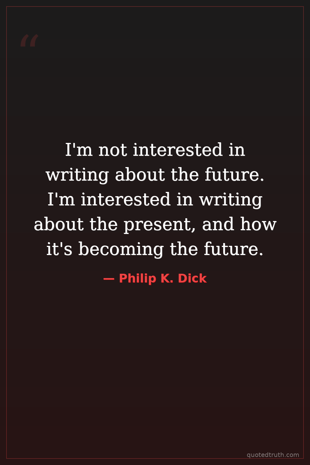 I'm not interested in writing about the future. I'm interested in writing about the present, and how it's becoming the future.