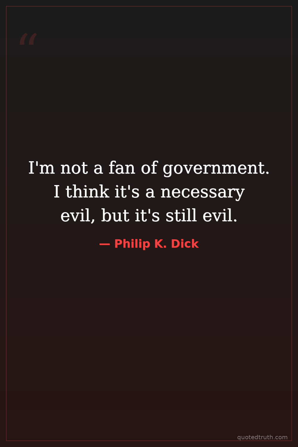 I'm not a fan of government. I think it's a necessary evil, but it's still evil.