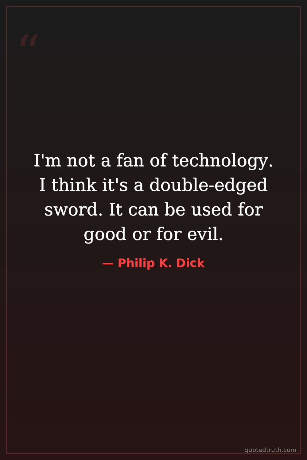 I'm not a fan of technology. I think it's a double-edged sword. It can be used for good or for evil.