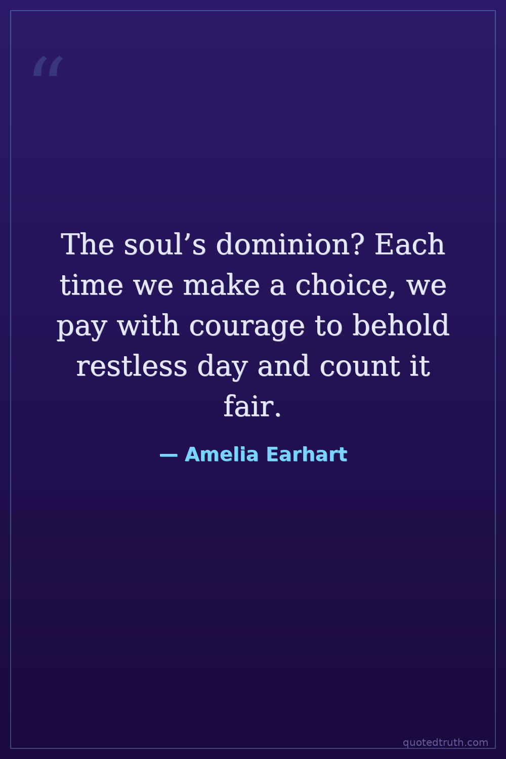 The soul’s dominion? Each time we make a choice, we pay with courage to behold restless day and count it fair.