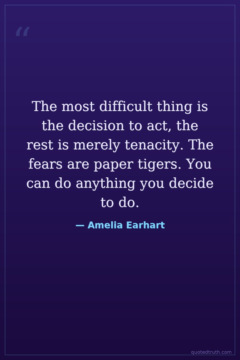 The most difficult thing is the decision to act, the rest is merely tenacity. The fears are paper tigers. You can do anything you decide to do.