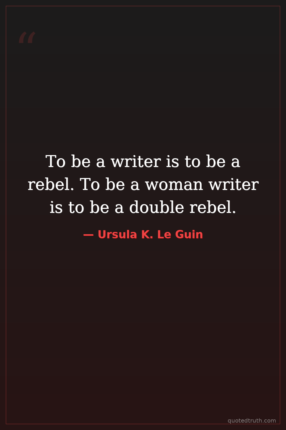 To be a writer is to be a rebel. To be a woman writer is to be a double rebel.