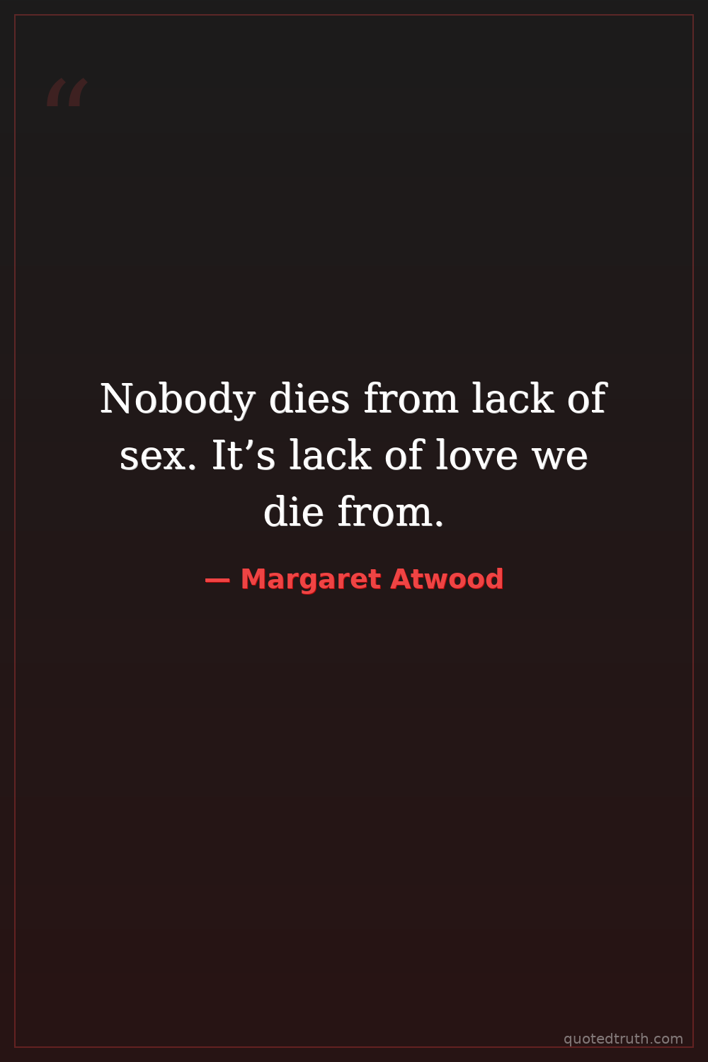 Nobody dies from lack of sex. It’s lack of love we die from.