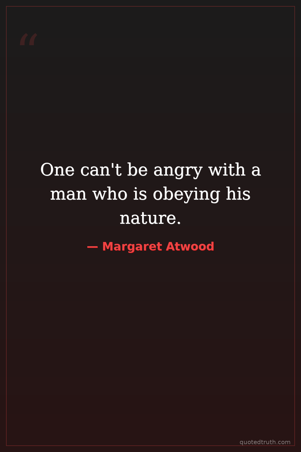 One can't be angry with a man who is obeying his nature.