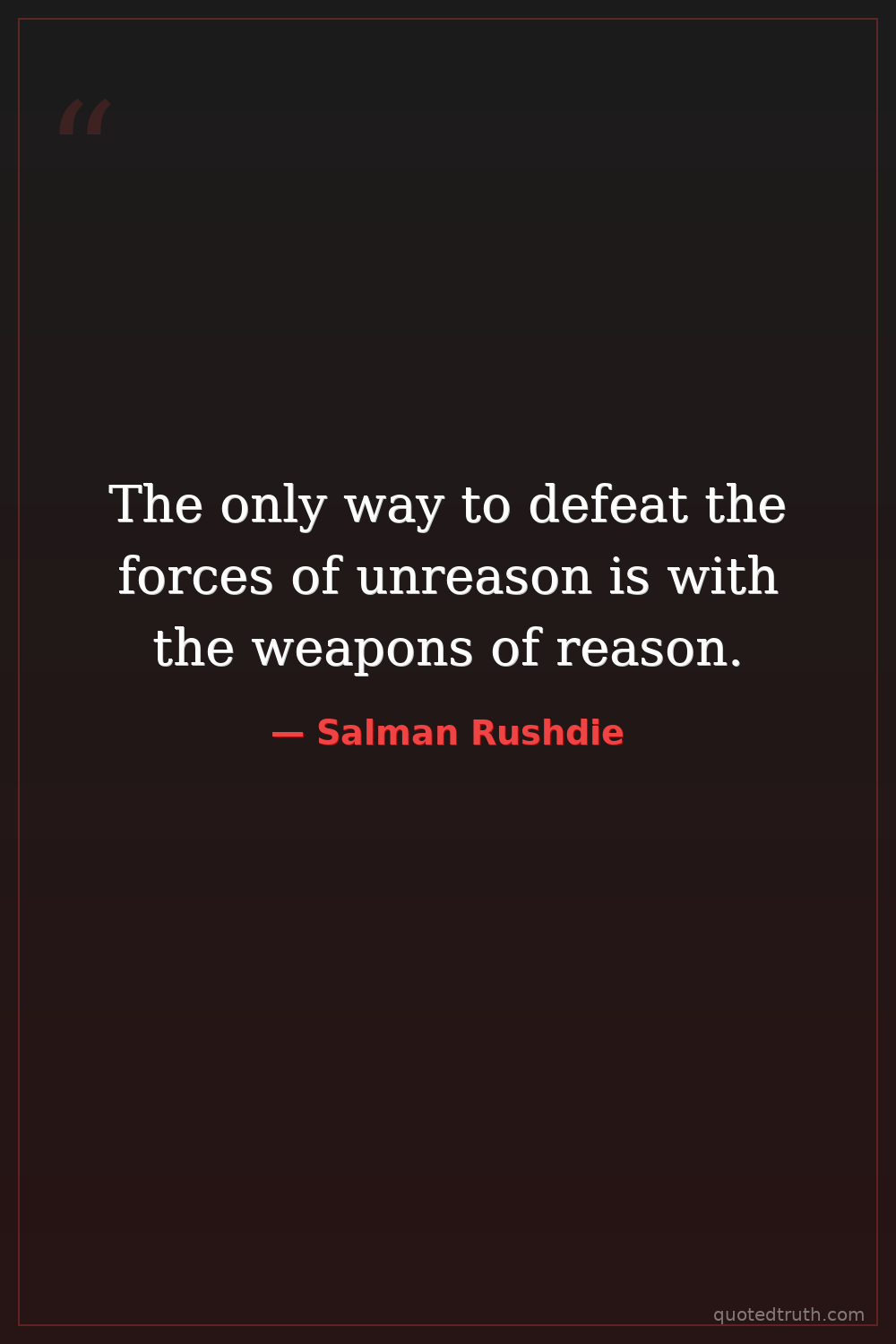 The only way to defeat the forces of unreason is with the weapons of reason.
