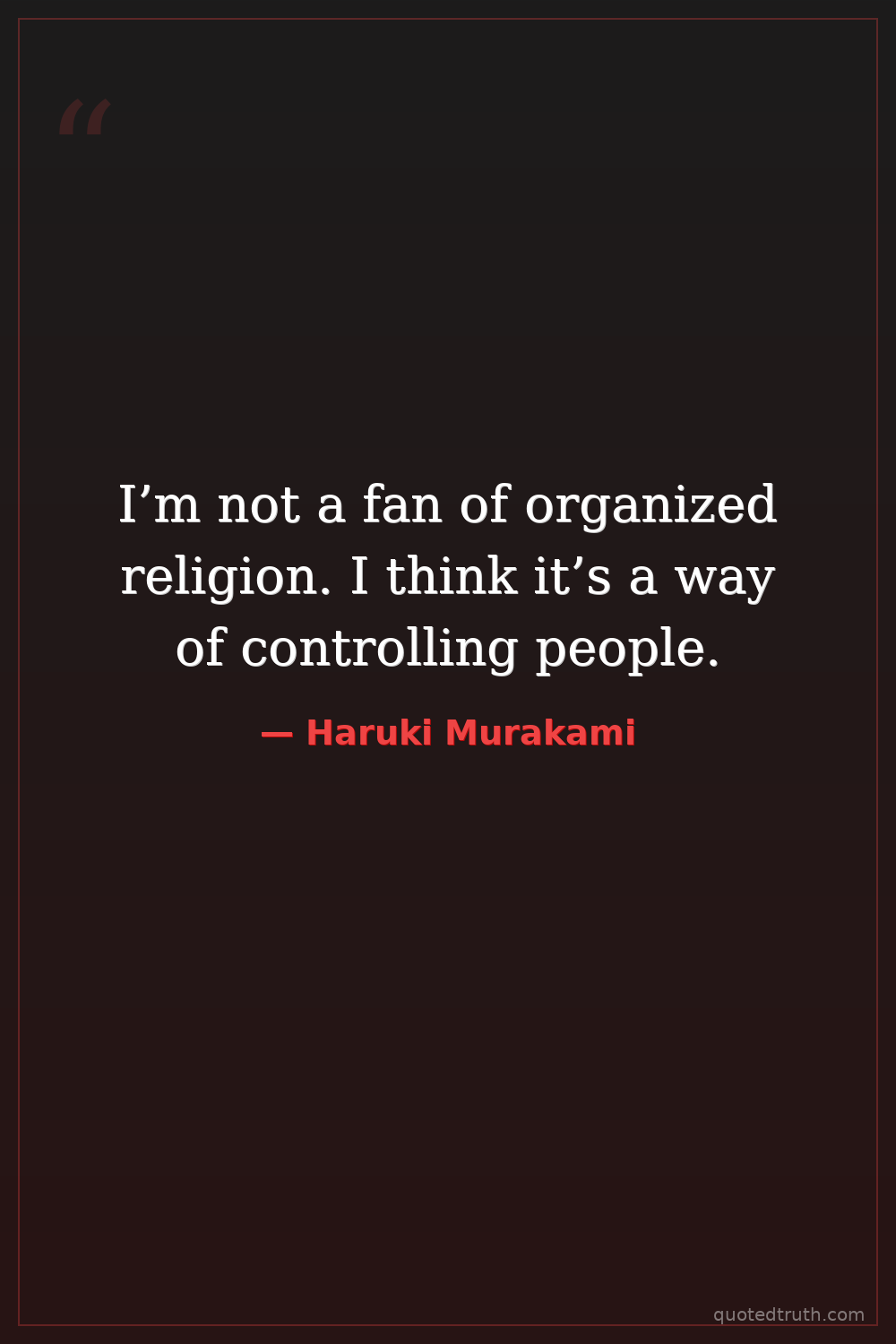 I’m not a fan of organized religion. I think it’s a way of controlling people.