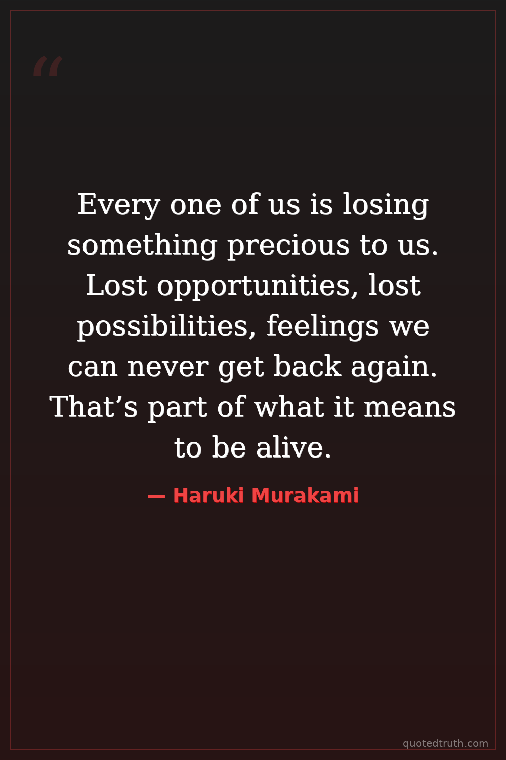 Every one of us is losing something precious to us. Lost opportunities, lost possibilities, feelings we can never get back again. That’s part of what it means to be alive.