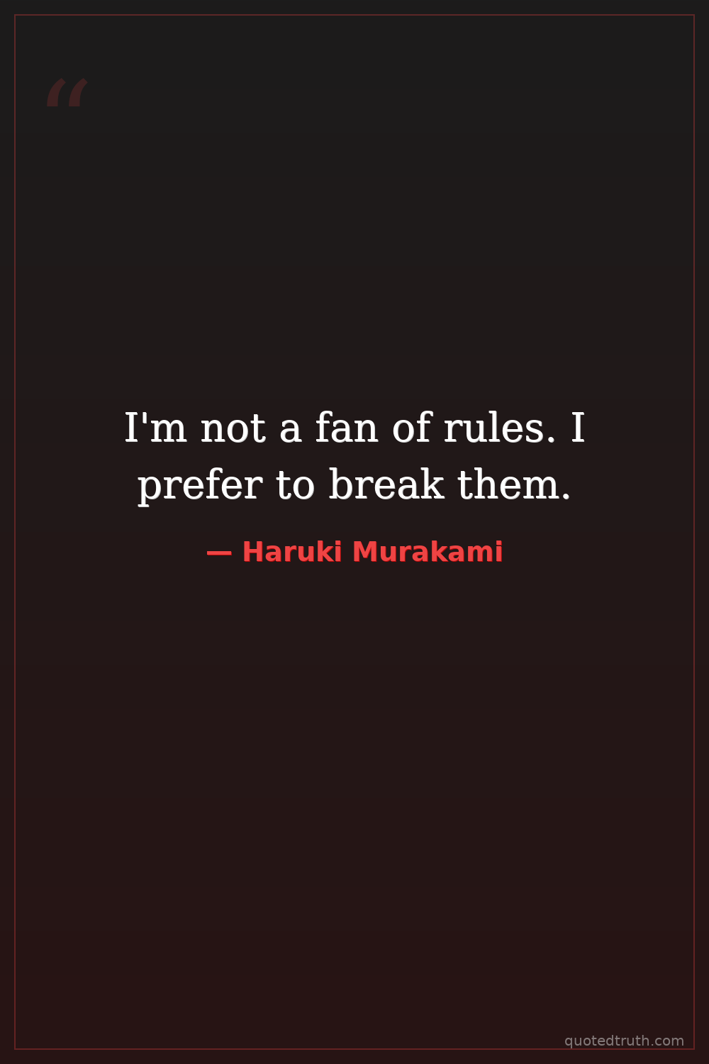 I'm not a fan of rules. I prefer to break them.