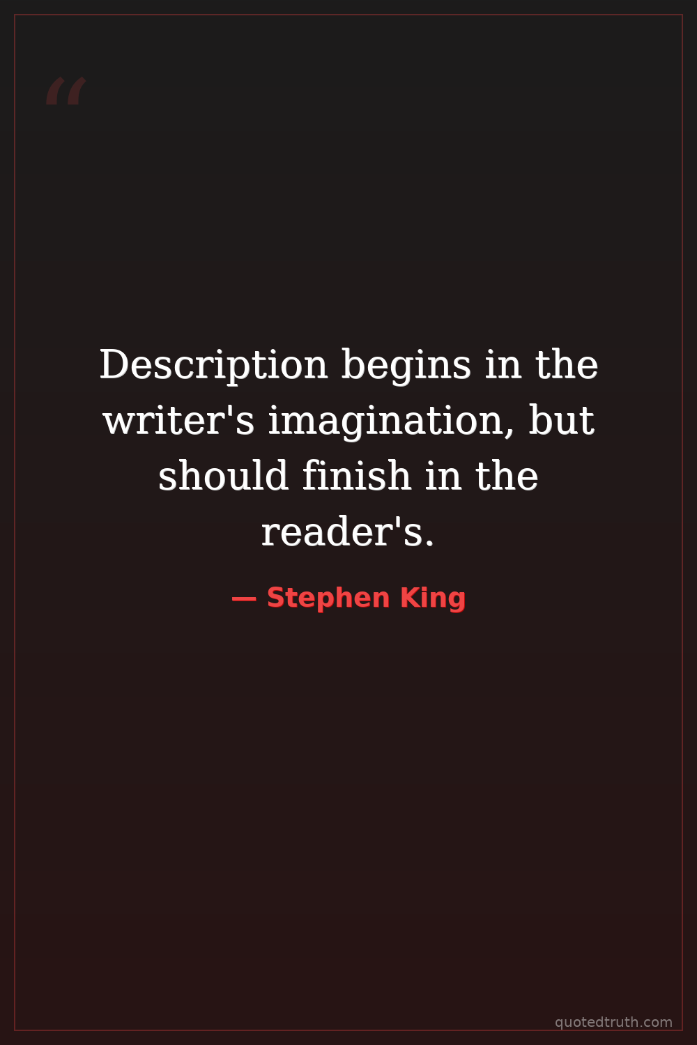 Description begins in the writer's imagination, but should finish in the reader's.