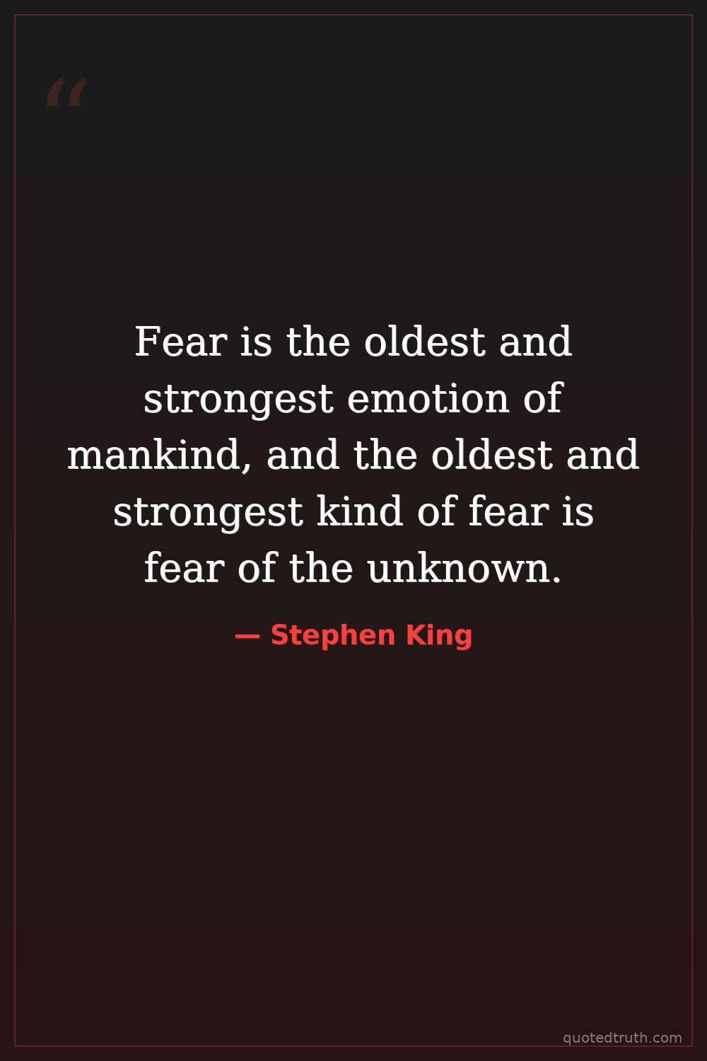 Fear is the oldest and strongest emotion of mankind, and the oldest and strongest kind of fear is fear of the unknown.